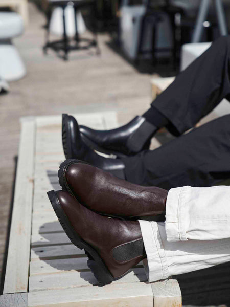 C’est là qu’on a choisi la Chelsea Boots cousue black : une tige One Cut pour isoler totalement le pied, une semelle commando pour ne pas glisser dans la rue, et un montage black qui affine la silhouette sans alourdir le style.