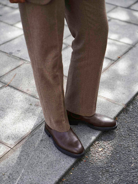 C’est ce montage qui permet à la Chelsea Boots de passer sans effort d’un costume à un jean brut. En gros : l’élégance italienne, avec la robustesse nécessaire pour affronter la pluie et le bitume.