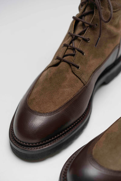 Le duo fonctionne à merveille. Le grainé structure l’ensemble, le suédé tempère. Et surtout, les deux se patinent comme du bon vin. Tes boots vont vieillir avec toi – et c’est tant mieux.